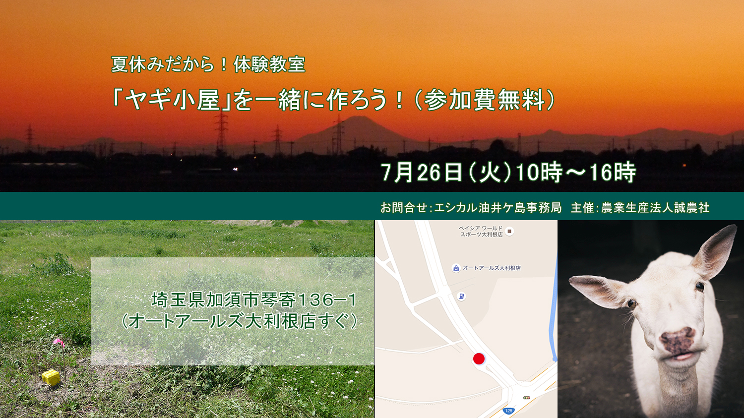 夏休みだから!体験教室「ヤギ小屋」を一緒に作ろう!(参加費無料)