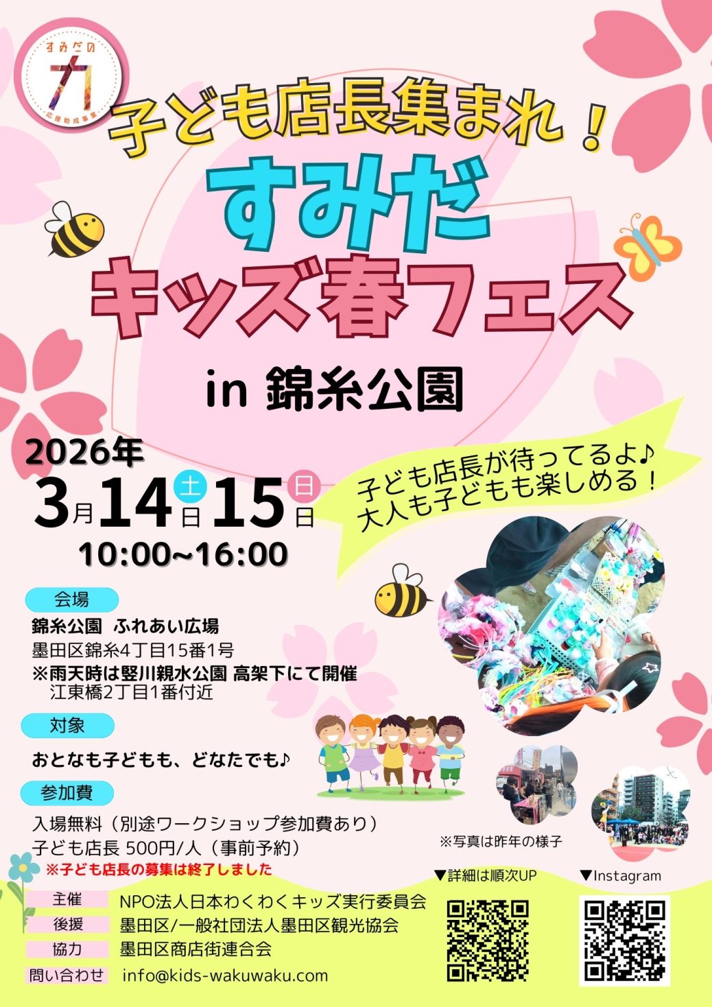 子ども店長集まれ!すみだキッズ春フェス2026 in 錦糸公園 3/14-15